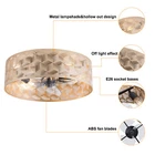 Specifications Material: Hardware Iron, ABS Process: Painting Motor Type: Pure Copper Motor Color: Gold Style: Modern Shape: Round Light Source Type:4*E26 Bulbs(Not Included) Light Voltage: 85-265V Efficiency: E Max. Single Bulb Power: 40W Assembly Required: Yes Indoor/Outdoor Usage: Indoor Mounting Type: Ceiling Mount Power Source: Corded Electric Number of Fan Blades: 3 Voltage: 85-265V Motor Power: 40W Working Noise: 35db Controller Type: Remote Control Remote Control Battery: 1*150mAh,12V AAA Battery(Included) Remote Control Range: 3-5m/9.8-16.4ft Timing: 1/2/4/8h Wind Speed Gears: 6 Applicable Area: 10-15m²/107-161ft ² Installation Space Height: 2.35m/7.7ft Distance between Fan Blade and Wall: 5cm/1.97in Base Load-bearing Capacity: Over 7kg/15.4lbs welcome Description Description The ceiling fan light is not only an excellent tool to light up your room but also embellish your room with unique modern elements. It combines simplicity and practicality, adding a touch of decor to your bedroom. You can install four E26 bulbs yourself such as incandescent bulbs or LED bulbs to create different lighting atmospheres and express your unique taste. Key Features Durable Material: The lampshade is made of hardware iron after the painting process, thus having high strength and toughness, corrosion resistance, and high-temperature resistance. ABS fan blades have good mechanical properties, good impact resistance, and stable chemical properties. User-friendly Design: With 6 adjustable speeds, whether you want a gentle breeze or a more powerful airflow, our ceiling fan light will meet your needs. In addition, it is equipped with a timer function, you can set it to automatically turn off after 1/2/4/8 hours by the remote control within 9.8-16.4ft to save energy. Eye-catching Appearance: Countless smooth golden lines are spliced together to present a beautiful diamond pattern. When the lights are lit, the light and shadow on the pattern create a romantic and warm atmosphere, adding a touch of decor to your space. Customizable Lighting: Our ceiling fan light features 4 E26 lamp holders, allowing for easy installation of various light sources(LED, halogen, CFL, Incandescent) that suit your preferences. Suitable for Summer and Winter: It can rotate both forward and reverse. In summer, it rotates forward to circulate air downward to enjoy the cool natural breeze. In winter, it rotates backward to circulate air upward to enhance indoor air circulation. Healthy and Energy-saving: The ceiling fan light provides more comprehensive air circulation and cooling, thereby reducing the frequency and time of air conditioning use, saving energy, and reducing expenses. It can avoid direct blowing and reduce the risk of air conditioning diseases. Easy to Clean: Thanks to the simple structure and smooth surface, you can easily wipe it clean with a rag. High Safety: The multiple heat dissipation holes and a wide voltage range (85-265V) can effectively ensure safety and extend product life, so you can use it with confidence. Ideal Gift: This product is practical and high-quality and can be used as a housewarming, birthday, or holiday gift for parents, friends, and loved ones. Assembly in a Brezze: The main body of the product is already assembled and equipped with complete accessories and an English manual, you just need to install it on the ceiling and connect the wires, making the installation a breeze. Guaranteed Customer Service: Our friendly customer service team would be happy to solve your issues with our ceiling fan light. If you have any issues, please feel free to contact us. Details Sturdy Base: The hardware iron base (5.9in) is sturdy and durable to ensure the stability of the light and can withstand up to 15.4 lbs without collapsing. Quiet & Powerful Motor: The 40W pure copper motor can effectively produce large air volume with low energy consumption and low noise(35dB equivalent to a whisper), bringing you coolness even in the scorching summer. Application Its applicable area is 107-161ft², and the applicable height is 7.7ft. It is suitable for living room, dining room, kitchen, study bedroom, bedroom, conference room, etc. Specifications Material: Hardware Iron, ABS Process: Painting Motor Type: Pure Copper Motor Color: Gold Style: Modern Shape: Round Light Source Type:4*E26 Bulbs(Not Included) Light Voltage: 85-265V Efficiency: E Max. Single Bulb Power: 40W Assembly Required: Yes Indoor/Outdoor Usage: Indoor Mounting Type: Ceiling Mount Power Source: Corded Electric Number of Fan Blades: 3 Voltage: 85-265V Motor Power: 40W Working Noise: 35db Controller Type: Remote Control Remote Control Battery: 1*150mAh,12V AAA Battery(Included) Remote Control Range: 3-5m/9.8-16.4ft Timing: 1/2/4/8h Wind Speed Gears: 6 Applicable Area: 10-15m²/107-161ft ² Installation Space Height: 2.35m/7.7ft Distance between Fan Blade and Wall: 5cm/1.97in Base Load-bearing Capacity: Over 7kg/15.4lbs Base Diameter: 15cm/5.9in Lampshade Size(D*H): 45*17cm/18*6.69in Package Included 1* Ceiling Fan Light 1* English Manual 1* Remote Control 1* AAA Battery All Accessories for Installation Notes 1. The height of the space where it is installed is at least 7.7ft, and the distance between the fan blade and the wall is kept at least 1.97in. 2. This package does not include the E26 bulbs, and you need to buy four yourself. 3. Please use the lamp within the applicable voltage range and clean lamps regularly. Please cut off the power supply when you clean the light. Please wipe with a soft cloth, it is not suitable to clean with cleaning agents. 4. Please read the English instructions carefully before use and pay special attention to the safety tips inside. 5. Please wear electric insulation gloves(not included) and avoid scratching the surface of the lamp and the electric wire when installing. Please make sure that the power supply has been cut off before installation, and conduct a power test before installation. Please install it by a lic