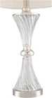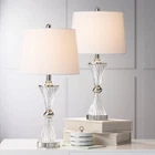 【Specifications】 Set of 2 USB lamps. Each is 25 1/2" high overall. Shades are 12" wide at the top x 14" wide at the bottom x 10" high. Each uses one maximum 150 watt standard-medium base bulb (not included). On-off socket switches. 【Functional Elegance for Nightstands】Illuminate your night stand or bedside table with this table lamp set, equipped with a USB port for easy charging. These bedroom lamps for nightstands enhance clear glass table lamps with decorative details, creating a luxury feel for your bed side while offering ideal lighting for reading. Set of two contemporary modern USB table lamps. From the Regency Hill brand. 【Pre-Assembled Shade】USB ports in bases rated at Type 1-amp. Use them to keep your mobile phones and tablets always charged. Glass lamp construction. Chrome finish metal accents. White fabric drum shades. 7-foot long cords. 【Versatile Style for Every Room】Perfect for a side table, end table, or console, these modern lamps for a living room elevate your home with their sleek design from Lamps Plus. Whether used as table lamps for a living room or a stylish entryway addition, they bring timeless elegance to any space. Product Description Luca Chrome and Glass Modern USB Table Lamps Set of 2 Featuring lamps made with glass, this set of two lovely contemporary table lamps with USB port from Regency Hill is elegant and attractive. Accented with chrome, these lamps are bold and detailed from top to bottom. Both lamps feature a USB port for versatility and convenience in any setting. Utilize this set of two contemporary table lamps with USB ports to decorate and enhance any living space. SIZE Set of 2 USB lamps. Each is 25 1/2" high overall. Shades are 12" wide at the top x 14" wide at the bottom x 10" high. 7-foot long cords. DETAILS Each uses one maximum 150 watt standard-medium base bulb (not included). On-off socket switches. Set of two contemporary modern USB table lamps. From the Regency Hill brand. Glass lamp construction. Chrome finish metal accents. White fabric drum shades. USB ports in bases rated at Type 1-amp. Use them to keep your mobile phones and tablets always charged. RECOMMENDED BULB LED Edison filament bulb. A23 shape; standard-medium E26 base. Dimmable with an LED rated dimmer. Note: Do not touch halogen bulbs with bare hands when installing, otherwise premature bulb failure may occur. FROM REGENCY HILL Traditional lighting with high-end details that are within everyone's reach defines the designs from Regency Hill.