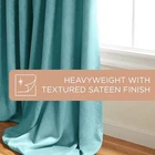 Product Description The Lustre Solid Heavyweight Textured Sateen Room Darkening Grommet Top Curtains are the perfect addition to any room. Woven with thermal insulation, these indoor curtains are energy efficient, block natural light, and provide privacy in your home. This light blocking curtain panel set has a beautiful lustrous sheen and includes eight (8) brushed nickel grommets, making them an ideal window treatment for your living room or bedroom. These timeless curtains fit any curtain rod up to 1.25” in diameter. For proper look and fullness, the curtain panels should measure 2-3 times the width of your window/opening. Hand wash only. From the Manufacturer Amalgamated Textiles USA, Inc, is North America’s leading supplier of home textiles and ready-made drapery by delivering high fashion designs, patterns, varying textures, and colors in an “affordable luxury” quality that today’s consumers expect. From classic solids to today’s top fashion trends, you are sure to find window panels to fit any look, mood, or style to complete your home décor project. We offer an array of fabric constructions as well, including jacquards, linens, burlap, sheers, thermal/blackout, silk and faux silks, polyester and poly blends, and cotton and cotton blends. These constructions are offered in varying designs and colors including solids, prints, textures, thickness, lengths, widths, and burnouts. Like millions of customers already have, let our window coverings be the anchor of each room in your home! Heavyweight, Room Darkening Indoor Curtain Panel Set Includes (2) curtain panels, each measuring 52"W x 96"L. Room Darkening Opacity is designed for light control and privacy 100% Polyester, with textured, sateen look Grommet top treatment with eight (8) brushed nickel grommets Woven with thermal insulation and light blocking fibers Hand wash cold with like colors. Only non-chlorine bleach, as needed. Line dry. Cool iron.