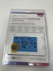 The Lux Touchscreen Programmable Thermostat in White (TX9600TS) is a universal thermostat compatible with heat pumps, packaged or rooftop air conditioners, and alkaline or 7-day touch screen models. It features a digital display and touch control style with a 4-inch display size. The thermostat is programmable with a 7-day schedule and has low battery indicators. It is wall-mounted and has a 2-wire wire configuration. The Lux thermostat has a rectangular shape and is made of plastic. It is a low voltage thermostat with a voltage of 240V and has a protection property of low voltage protection. The thermostat has a temperature sensor technology and can switch between heat, cool, and off modes.