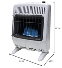 Vent Free Blue Flame Heater with 20,000 BTU is your go-to solution for efficient supplemental heating, even on the coldest days. Designed to operate with natural gas, this vent free gas heater warms indoor spaces up to 700 square feet, making it ideal for chilly basements, sunrooms, and cabins. The clean-burning blue flame burner provides consistent convection heat, ensuring that every corner of your space feels cozy and inviting. Equipped with a built-in thermostat, this heater allows for precise temperature control, so you can easily adjust the warmth to suit your comfort level. The battery-powered electronic ignition simplifies startup, and a battery is included for your convenience. You have the flexibility to either mount the unit permanently to the wall or secure it to the floor using the included legs and mounting hardware. Safety is a top priority with this heater. It features a factory-standard oxygen depletion sensor that automatically shuts off the unit if oxygen levels become too low, providing you with peace of mind while you enjoy the warmth. This home gas heater is perfect for various applications, whether you need extra heat for cold rooms, additions, or workshops. With a high-altitude restriction of up to 4,500 feet, this heater is versatile enough to fit various environments. For enhanced heating efficiency, consider adding the optional blower fan kit (F299201), sold separately, to help distribute warmth throughout your space. Choose for a reliable, safe, and efficient heating solution that keeps you warm and comfortable all winter long. POWERFUL CONVECTION HEAT: This natural gas wall heater delivers up to 20,000 BTUs, using convection to transform cold rooms, additions, or other spaces into cozy retreats; ideal for areas up to 700 sq. ft. and effective at altitudes up to 4,500 feet EASY TEMPERATURE CONTROL: Adjust your indoor comfort easily with the intuitive thermostat on this indoor gas heater; it comes with a complimentary battery for dependable electric ignition, ensuring smooth, hassle-free operation FUEL-EFFICIENT BLUE FLAME HEATER: Delivers efficient warmth with a blue flame burner, consuming just .020 MCF per hour; it ensures consistent convection heat, offering even and energy-efficient warmth while minimizing energy usage SAFETY FEATURES: Featuring a low oxygen shut-off system (ODS); this ventless gas heater automatically shuts off if oxygen levels drop to unsafe levels; it ensures the heater does not consume too much oxygen FLEXIBLE & EASY SETUP: This natural gas indoor heater offers versatile installation options to suit your space; it includes sturdy feet for secure floor placement and wall-mount hardware; letting you easily set it up wherever you need extra warmth