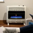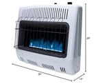 Vent Free Blue Flame Natural Gas Wall Heater is a powerful indoor heating solution, providing up to 30,000 BTUs to efficiently warm spaces up to 1,000 sq. ft. The heaters even convection heat ensures consistent comfort throughout the room. Versatile in design, it can be wall-mounted or used as a freestanding unit on the floor, with all necessary hardware and feet included. The built-in thermostat allows for precise heater thermostat control, while the battery-powered ignition (battery included) ensures easy operation. Safety is prioritized with an oxygen depletion sensor (ODS), which automatically shuts off the heater if oxygen levels fall too low. Suitable for altitudes up to 4,500 feet, this heater is ideal for cold rooms, sunrooms, additions, and cabins. The natural gas room heater comes in radiant or blue flame models, both indoor-safe, and operates on either propane or natural gas. POWERFUL HEAT: This gas wall heater provides up to 30,000 BTUs with natural gas, turning cold rooms, additions, or other spaces into cozy retreats; perfect for areas up to 1,000 sq. ft. and effective at altitudes up to 4,500 feet PRECISE HEATER THERMOSTAT CONTROL: Equipped with a convenient thermostat for accurate temperature adjustment to ensure your space stays comfortable; includes a free battery to power the reliable ignition for hassle-free operation FUEL-EFFICIENT BLUE FLAME HEATER: Delivers efficient warmth with a blue flame burner, consuming just .030 MCF per hour; it ensures consistent convection heat, offering even and energy-efficient warmth while minimizing energy usage SAFE HEAT: This wall space heater is equipped with a low oxygen shut-off system (ODS-Oxygen Depletion Sensor) for reliable and secure operation wherever it’s used DUAL MOUNTING OPTIONS: This natural gas indoor heater features a modern look and its versatile design allows for permanent wall mounting with the included brackets and fasteners or secure floor placement with the included standing feet and hardware