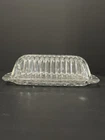 Vintage Duncan & Miller Butter Dish with Silver Floral Overlay