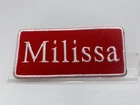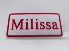 THIS AUCTION IS FOR A NEW EMBROIDERED IRON/SEW ON NAME PATCHES) ( SIZE 1-1/2 INCHES TALL AND 3-1/2 INCHES WIDE) MILISSA (BORDER AND NAME EMBROIDERED ) (AVAILABLE IN BLUE ON WHITE AND RED ON WHITE AND WHITE ON RED) (NEW) SHIPPING FOR THIS ITEM WILL BE (FREEEE IN THE U.S.A.) PLEASE PAY THROUGH EBAY. ITEMS WILL BE SHIPPED 1 BUSINESS DAY AFTER RECEIVING PAYMENT. THANK YOU FOR LOOKING! ! CLICK HERE TO Save as Favorite Seller Most items will be shipping in a regular letter envelope and will NOT have a tracking number. All items will be shipped the next day, if you pay before 10:00am pacific time your package will ship same day. If you pay on Saturday you package will ship on Monday unless it is a holiday it will ship on Tuesday. I ship 6 days a week. by 10:00am pacific time. INTERNATIONAL BIDDERS SHIPPING FOR THIS ITEM WILL BE $3.00 FOR THE FIRST PATCH OR SET AND .25 FOR EACH ADDITIONAL PATCH. THANK YOU FOR WATCHING <div style="text-align:center"><a style="text-decoration:none" href="http://mostpopular.sellathon.com/?id=AC583636"><img src="http://www.sellathon.com/Resources/Images/countercredit.gif" border="0"></a></div>