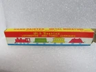 This listing is for a vintage box containing 4 miniature old fashion train pieces with moving wheels. They are in the original box. The only time they were taken out is when I took the picture. box measures 5 x 1 x 1/2" 110324-2 Please see all of the other, items that I have listed Please write if you have any questions and thanks for looking. .