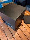 Purchased new in 2001. American Made. Paint is excellent. No chips. Well Cared for. Legendary THX Ultra Certified center channel speaker from the M&K S150 THX lineup. The Miller & Kreisel system has proved to sound natural, dynamic, and detailed in my home theater. It's certainly one of the best I've ever heard. Has built in angle to allow easy placement below or above your listening position for more easier positioning. Includes Two 5¼" midrange drivers, and three 1.1" tweeters with th e goal to make a vertically directional loudspeaker, so that it doesn't cause ceiling and floor reflections. H uge 400W power capacity and THX Ultra specs fills most rooms with sound to reference level. Search and read the original Stereophile Magazine review You can match these speakers with the L and R S150THX speaker, available in toe in angled face, or straight face. " The Angled Center Channel (AC) version of the 150 changes the angle of the face-plate: it rakes back from the top toward the bottom, while the tweeter and midrange arrays remain vertically aligned. This makes the AC-150 easy to focus on the listening position from the top of a large monitor. But turn the speaker upside down, and it becomes simple to focus it upward when the AC-150 is mounted below a screen. The top of the speaker also incorporates a five-degree rake-back to further reduce parallel-wall-induced reinforcement nodes. It's magnetically shielded to simplify top-of-monitor placement. S-150ACTHX center-channel speaker Impedance: 4 ohms Recommended power: 50-400W Frequency response: 82Hz-20kHz, ±2dB Dimensions: 12.5" x 10.5" x 12.25" (HxWxD) Weight: 23 lbs. " S-150ACTHX
