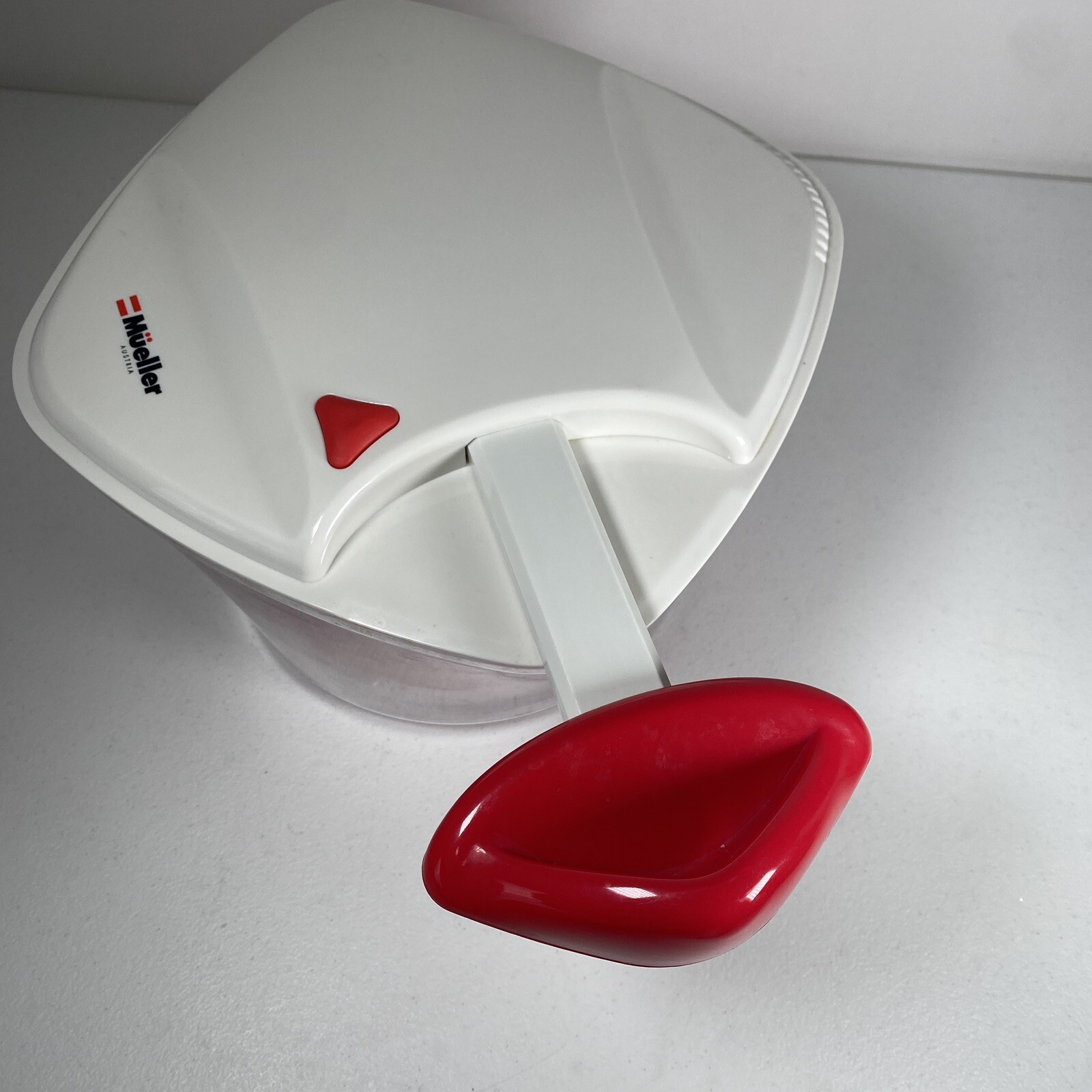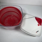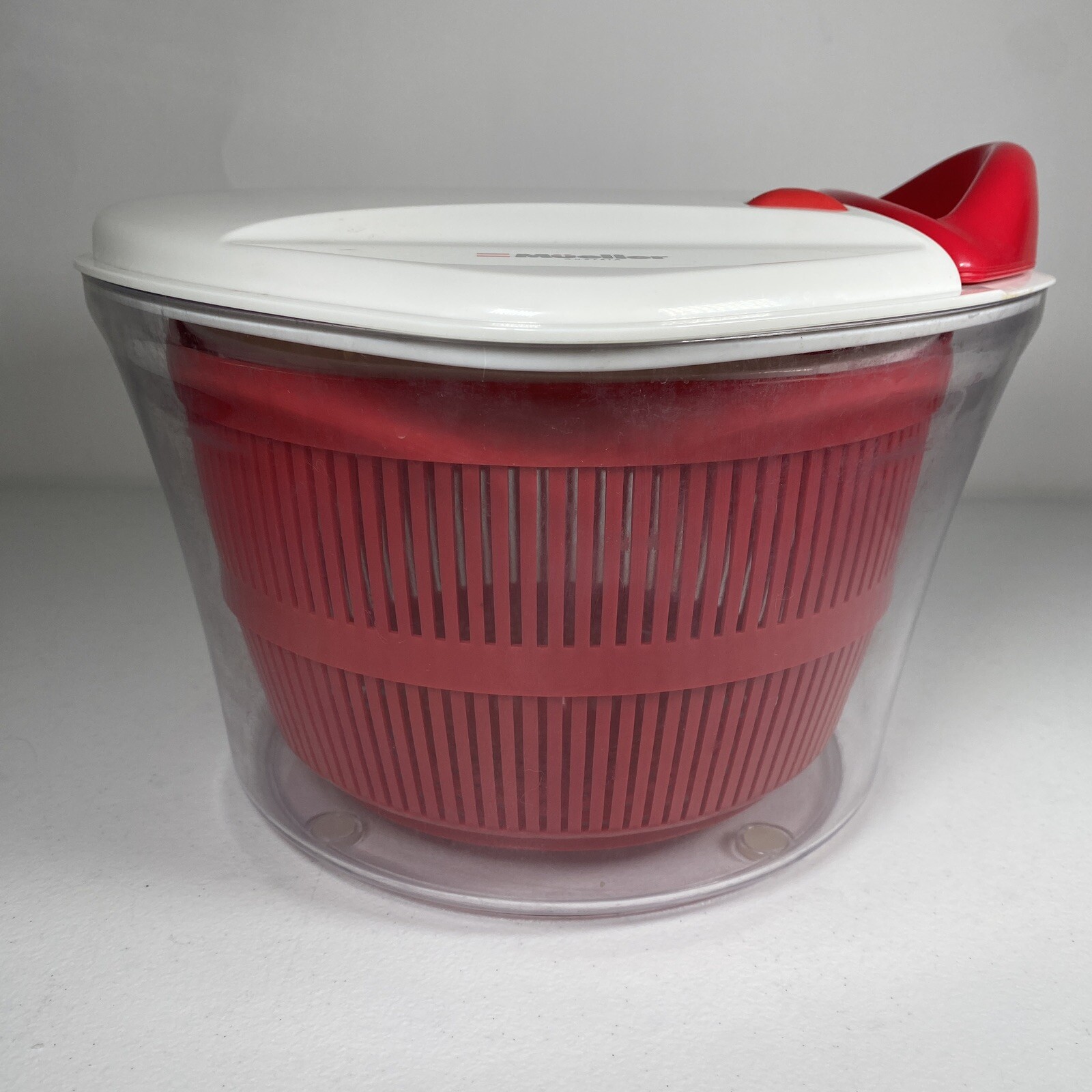 MUELLER Salad Spinner Pro Vegetable Washer - Pull To Spin Austria Red White The spinner has some general, light signs of use. The spin mechanism works well. Please refer to photos for overall condition.