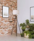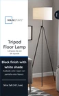 Update your decor with the Mainstays AF43495 BK Black Tripod Floor Lamp. This classic modern tripod light features three sturdy metal legs in a black finish topped with a white drum shade. The Mainstays floor lamp also includes a pull chain at the socket for easy on and off. It's compatible with 150W incandescent and other equivalent bulbs (not included). Standing 58" tall, this lamp is designed to blend in with most home decor styles and is ideal in young adult dorm rooms and adult home offices. The white shade is also textured with a matching trim for added style. 58"H AF43495BK Modern Tri Pod Floor Lamp White textured lamp shade with matching trim Can blend in with most home decor styles Sturdy metal legs with a black finish Ideal in young adult dorms and adult home office Easy to use pull chain switch Uses 150W incandescent bulb or equivalent, not included 15"W x 15"L x 9"H shade