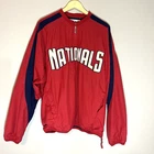 The Majestic Authentic Nationals Men's Jacket is an officially licensed MLB product. This red 1/4 zip pullover warm up windbreaker jacket is made for men and is extra large in size. It is designed for regular season wear and is perfect for fans of the Washington Nationals. Very good condition Smoke free environment We try to ship same day or next day Feel free to message us with any questions