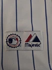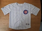 Show your support for the Chicago Cubs with this officially licensed Majestic jersey featuring Kerry Wood's #34. Made for boys in size small, this white jersey is perfect for fans of the Major League Baseball team. The jersey is embroidered with the team's pinstripe design and is perfect for wearing to games or for everyday wear. Don't miss out on the chance to own this piece of fan apparel!