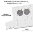 Features: Foldable Design: This makeup mirror features a convenient foldable design, allowing you to easily carry it wherever you go. Stay exquisite on the go! Illumination: Equipped with 6 LEDs on side, this mirror provides perfect for your makeup application. Say goodbye to poorly lit areas. Clear Reflection: With its two-sided high definition mirror surfaces, this makeup mirror ensures clear reflection, allowing you to see every detail of your makeup. Powered: Powered by 2 CR2032 (included), this mirror offers cordless operation, making it perfect for travel or use in any room. Versatile Use: Whether you're applying makeup, skincare, or grooming, this versatile makeup mirror is a -have. Portable enough for daily use. Specifications: Number of LEDs: 6 Capacity: 2*CR2032, 3V 240mAh Material: ABS+glass Color: Black, White, (Optional) Product Size: 7*7*1.1cm/2.75*2.75*0.43in Product Weight: 60g/2.11oz Package Size: 9*9*2cm/3.54*3.54*0.78in Package Weight: 70g/2.47oz Package List: W23302B 1 * Makeup Mirror