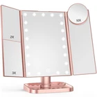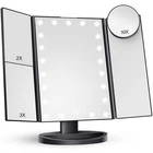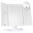 Built in 21 LED bulbs; Makeup mirror provides a good brightness for makeup; dim or brighten up the lights with a long pressing of touch screen switch 10X,3X,2X magnification modes; lighted makeup mirror has 3 panels magnifying and wide-angle viewing; see clearly your face and make a flawless makeup, suitable for desk makeup and handheld use. Note that the main mirror does not have 10X magnification Dual power supply; makeup mirror with lights powered by USB charging cable or 4xAAA batteries; USB cable included, Charger and batteries not included Adjustable degree rotation & touch control; adjust the mirror as per the suitable viewing angle you wish, easy and convenient touch switch, easily control the LED makeup mirror when doing makeup Top gift for women; birthday gift, Valentine's Day gift, Mother’s Day gifts, Christmas gifts for teen girls, family, wife, or girlfriend, or another special day gift;