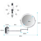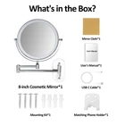 Illuminate Your Beauty: Our wall-mounted makeup mirror, adorned with efficient LED beads, delivers a gentle, eye-friendly makeup illumination. With three selectable color temperatures—cool white, warm white, and natural light—you can achieve the perfect ambiance. Long-press for seamless dimming. After a full charge, enjoy 4-6 hours of continuous use, and the auto-shutoff feature kicks in after 30 minutes of inactivity, preserving power for your convenience. 1X/10X Magnification: Experience a high-definition, expansive view with the 8-inch large-diameter makeup mirror with lights. Flip the mirror for both 1x and 10x magnifications, ensuring no detail is overlooked. It's your go-to choice for makeup, eyebrow shaping, skincare, and hairstyling. Flexible and Space-Saving Design: With a 360° rotatable mirror and extendable arm stand, easily adjust the angle and position without the need to bend. After use, fold the extendable arm to save space, eliminating the need to hunch over during your beauty routine. Easy to Install Wall-Mounted Mirror: This led makeup mirror with lights is very easy to install, please check that all the accessories are complete before installing, and the base can be mounted to any wall with simple screws. Package content: 8" Makeup Mirror with Lights*1, Mounting Kit*1, Mirror Cloth*1, 1.5m C-Type Charging Cable*1, User Manual*1, Supporting Bracket*1 (for you to make up or leisure time relaxation and entertainment).