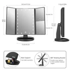 With 2X and 3X Magnification Design: There are 2 magnifying glass plates (magnification 2x/3x), when you need fine makeup details (such as eyeliner, mascara and lenses), the high-definition mirror is very clear, you can see the face For every detail, so that you can enjoy meticulous makeup. 21 Smart Lights: There are 21 LED lights in the mirror. The brightness can be adjusted by touching the sensor switch, and the LED lights can be dimmed or brightened by long pressing the sensor switch. Very suitable for use in dimly lit areas.The base recess can hold Jewelery cosmetics, watch, earrings, bracelets, etc.to meet our daily needs. 180 degree rotation & Tri-fold: The light-emitting makeup mirror on the worktable can be easily adjusted, and the viewing angle can be fixed perfectly and comfortably. Tri-Fold Design :Easy for take away and daily maintenance, can open or fold it like a book when not using to protect it away from the dust or other scratches.The tri-fold and detachable design allows you to take it with you and enjoy delicate makeup anytime, anywhere. Practical design: Use UV coating to make the mirror more polished and smooth, thereby preventing scratches on the surface, fingerprints and oil stains. ABS plastic boxes are more durable than ordinary plastics, which makes the mirrors last longer. Dual power supply: This Led mirror can be operated with 4 AAA batteries (not included in the package) or USB cable (including USB cable), the mirror itself cannot power
