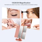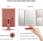 With 2X and 3X Magnification Design: There are 2 magnifying glass plates (magnification 2x/3x), when you need fine makeup details (such as eyeliner, mascara and lenses), the high-definition makeup mirror with lights is very clear, you can see the face For every detail, so that you can enjoy meticulous makeup 21 Smart Lights: There are 21 LED lights in the vanity mirror. The brightness can be adjusted by touching the sensor switch, and the LED lights can be dimmed or brightened by long pressing the sensor switch. Very suitable for use in dimly lit areas.The base recess can hold Jewelery cosmetics, watch, earrings, bracelets, etc.to meet our daily needs 180 degree rotation & Tri-fold: The light-emitting makeup mirror on the worktable can be easily adjusted, and the viewing angle can be fixed perfectly and comfortably. Tri-Fold Design :Easy for take away and daily maintenance, can open or fold it like a book when not using to protect it away from the dust or other scratches.The tri-fold and detachable design allows you to take it with you and enjoy delicate makeup anytime, anywhere Practical design: Use UV coating to make the mirror with light more polished and smooth, thereby preventing scratches on the surface, fingerprints and oil stains. ABS plastic boxes are more durable than ordinary plastics, which makes the mirrors last longe Dual power supply: This Led mirror can be operated with 4 AAA batteries (not included in the package) or USB cable (including USB cable), the mirror itself cannot power