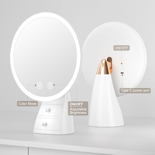 Return Policy Fast Delivery Trusted seller Makeup Mirror with Lights, Make Up Desk Mirror with Organizer, Rechargeable Touch Control 3 Color Lights and Adjustable Brightness, Lighted Vanity Mirror for Desk, Dresser Tabletop, Gifts for Women Product Description 【Structural Aesthetic Design & Rotatable】 lighted makeup desk mirror is made of high-quality ABS plastic and glass. It is 11.73 inches high, 8.66 inches in mirror diameter, adjustable angle, weighs 1.56 pounds, has a large mirror, simple structure, and is comfortable to use.The make up mirror with lighting can be rotated 75 degrees during the makeup process to find the most suitable angle for you. It's really dorm room essentials for girls 【Super Light & Memory Function】This desktop dressing mirror provides 3 colors of light: white light, warm light, and natural light. This vanity mirror with the light 20-100% brightness adjustment, and has a memory function to retain your light settings 【Long battery life & Auto-off】The vanity mirror with lights has a large 2800 mAh battery, which can be used continuously for 5-8 hours on a single full charge.To save power and prevent you from forgetting to turn off the light, it will automatically turn off after 30 minutes of inactivity 【Small Storage Box & Non-slip】The makeup mirror is equipped with 2 small drawers, which is convenient for storing your rings, earrings, hairbands and other decorations and some small tools.The bottom is designed with non-slip rubber to prevent the mirror from moving during use.The mirror takes up little desktop space, effectively saving desktop space 【HD Mirror & Smart Touch Sensor Control】Our lighted makeup mirror has two buttons, one controls the light on/off and adjusts the brightness, the other switches the light color (The light cannot be operated after the main switch behind the mirror is turned off). More than a tabletop mirror, this light-up makeup mirror with storage elevates vanity setups 【Ideal Gift for Women & Girls】This mirror with lights is dorm essentials for girls as a good interior decoration, also suitable for bedroom, bathroom, dresser tabletop, dressing room.This lighted makeup mirror with stand blends elegance, organizer function—making it a thoughtful gift for birthdays, holidays, Mother’s Day, or any special moment. A beautiful addition to any vanity or desk Shipping Returns Payment Shipping Shipping is FREE to all addresses other than APO/PO boxes in the lower 48 states. All our stock ships from US-based warehouses. Shipped via USPS or UPS (depending on location and package weight) Unless stated otherwise, all orders will ship within 24-72 hours of your payment being processed. Check our feedback to see the great reviews of FAST shipping we offer. Returns Seller does not accept returns Payment We currently accept payment via eBay managed payments only. Once payment is cleared, we will dispatch your shipment within 1-3 business days. Please refer to the "Shipping" tab for more information regarding shipping speed to your destination.