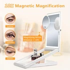 Makeup Mirror with Lights, Travel Vanity Mirror with 10X Magnification, 3 Color Lights Dimmable Touch Screen Tabletop Folding Compact Cosmetic Mirror Product Details Brand: Pet Baby Room Type: Bedroom Shape: Square Product Dimensions: 1.06"L x 8.74"W Frame Material: Acrylonitrile Butadiene Styrene (ABS) Brand: Pet Baby Room Type: Bedroom Shape: Square Product Dimensions: 1.06"L x 8.74"W Frame Material: Acrylonitrile Butadiene Styrene (ABS) Mounting Type: Tabletop Mount Special Feature: Foldable, Adjustable, Magnifying Color: White Theme: Travel Number of Pieces: 1, 2 Number of Items: 1 Material: Acrylonitrile Butadiene Styrene Frame Type: Framed Assembly Required: No Manufacturer: Huitao Technology Item Weight: 1.76 pounds Date First Available: August 21, 2023 Portable Travel Makeup Mirror:The travel mirror with light has an overall size of 8.74*5.9 inches and a folding thickness of 1.06 inches. Easily fit in your handbag and suitcase for perfect travel use. 3 Color Lights & Dimmable:The travel makeup mirror has a built-in 58 light beads, which can be freely switched between soft and warm colors, neutral white, and natural light. The touch screen can adjust different light colors and brightness at will. 10X Magnifying Mirror: The travel makeup mirror is equipped with 10x magnifying mirror(diameter of 0.3in) to let you see the details of your makeup and ensure flawless makeup, suitable for eyeliner, eyebrows, and lipstick. The adjustable height can adapt to the makeup needs of different parts and different environments. Rechargeable Makeup Mirror with Light: The travel makeup mirror built-in about 2000mAh rechargeable battery, fully charged can work for up to 420min. Long life, do not worry about taking out soon out of power. The makeup mirror with lights comes with a TYPE-C charging cable, which can be connected to a laptop, adapter, mobile treasure, car charger, etc. Perfect Present for Women: Cosmetic mirror with lights are made of high-quality ABS and glass material, durable, exquisite packaging, is the choice of presents to women. If you have any questions after purchase, please feel free to contact us, we will give you a satisfactory answer within 24h. For Christmas, Valentine's Day, Thanksgiving, birthday, Mother's Day or other occasions, this travel makeup mirror is the perfect present for moms, daughters, sisters, girlfriends and wives.