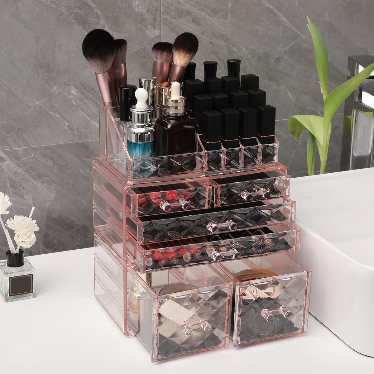 PRACTICAL: Keep all your cosmetics, jewelry or hair accessories neat, organized and easy to find. CLASSY DESIGN: Manufactured from durable, clear acrylic the organizer looks elegant sitting on your vanity, bathroom counter, dresser or anywhere you need it. VERSATILE: Organizer has compartments of various sizes and shapes to accommodate your needs. SIMPLIFY YOUR LIFE: Have all your daily essential items neat, organized and at arm’s reach. PERFECT GIFT ITEM: The organizer can be appreciated at any age and at any stage of life.