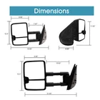 Product Description Detailed description of the product Specifications : Condition New Number Of Pieces 2 Fold Away Manual Fold Warranty 1 Year Color Black Location Passenger Right + Driver Left Side Features: Manual Adjustment Mirrors LED Turn Signal Light (reserved,need to wire realize) Black Housing Manual Extendable Arms Manual Extend The Length Of The Towing Mirror 24" Fits: 2007 2008 2009 2010 2011 2012 2013 Chevrolet Avalanche 2007 2008 2009 2010 2011 2012 2013 Chevrolet Silverado 1500 2007 2008 2009 2010 2011 2012 2013 2014 Chevrolet Silverado 2500 3500 2007 2008 2009 2010 2011 2012 2013 2014 Chevrolet Suburban 1500 2500 2007 2008 2009 2010 2011 2012 2013 2014 Chevrolet Tahoe 2007 2008 2009 2010 2011 2012 2013 GMC Sierra 1500 2007 2008 2009 2010 2011 2012 2013 2014 GMC Sierra 2500 3500 2007 2008 2009 2010 2011 2012 2013 2014 GMC Yukon 2007 2008 2009 2010 2011 2012 2013 2014 GMC Yukon XL 1500 2007 2008 2009 2010 2011 2012 2013 GMC Yukon XL 2500 Note : These mirrors will only work properly on vehicles with these exact options. If your vehicle does not have the options listed, these mirrors may not function properly. No installation guide. Professional installation is highly recommended. In the event the item should fail due to manufacturing defects during intended use, we will replace the part by free.(1 Year Warranty) If you encounter any problems, please contact us and we will provide you with solutions. Thank you! Payment Shipping Returns Contact Us PayPal is our preferred method of payment for all of our eBay sales. For customer service please contact us via eBay MessagesImmediate payment via PayPal is required for all Buy It Now items. If you need special arrangements, please contact us through eBay messages. Generally, all goods will be shipped within 24 hours after the payment on the working day (except for goods sent from China). If you want to cancel the order or change the address, please contact us within 6 hours after payment, otherwise we will not be responsible. It takes 3-5 working days for logistics and transportation to be delivered. If you are not satisfied with your purchase, you may return it, for a refund or replacement - subject to the following: Contact us through eBay messages or the returns link to receive a Returned Merchandise Authorization (RMA) number to ensure proper handling of the return and/or replacement. In order to be eligible for a full refund, less shipping expenses, your returned merchandise must be in its original new condition, as shipped, with all packaging, manuals, and paperwork intact and unaltered. Items which have been opened are returnable, however they will carry a restocking fee. If that product is returned for a refund, the shipping expenses incurred, will be deducted from the refund. If an item is refused, the carrier bills us for shipping both ways, and these expenses incurred on your behalf need to be deducted from your refund If you have a question about a part you should contact us before buying.And If you have any questions after purchase, please contact us and we will provide a satisfactory solution. Payment PayPal is our preferred method of payment for all of our eBay sales. For customer service please contact us via eBay MessagesImmediate payment via PayPal is required for all Buy It Now items. If you need special arrangements, please contact us through eBay messages. Shipping Generally, all goods will be shipped within 24 hours after the payment on the working day (except for goods sent from China). If you want to cancel the order or change the address, please contact us within 6 hours after payment, otherwise we will not be responsible. It takes 3-5 working days for logistics and transportation to be delivered. Returns If you are not satisfied with your purchase, you may return it, for a refund or replacement - subject to the following: Contact us through eBay messages or the returns link to receive a Returned Merchandise Authorization (RMA) number to ensure proper handling of the return and/or replacement. In order to be eligible for a full refund, less shipping expenses, your returned merchandise must be in its original new condition, as shipped, with all packaging, manuals, and paperwork intact and unaltered. Items which have been opened are returnable, however they will carry a restocking fee. If that product is returned for a refund, the shipping expenses incurred, will be deducted from the refund. If an item is refused, the carrier bills us for shipping both ways, and these expenses incurred on your behalf need to be deducted from your refund Contact Us If you have a question about a part you should contact us before buying.And If you have any questions after purchase, please contact us and we will provide a satisfactory solution. Related Products Pair Tow Mirrors Power Heated Turn Signal For 2015-2018 Chevrolet Silverado 2500 Tow Mirrors Power Heated Fits 2014-2018 Chevy Silverado GMC Sierra LH RH Chrome Tow Mirrors Power Arrow Signal Fits 2007-2013 GMC Yukon XL 2500 Left+Right Side Towing Mirrors Power Heated For 2007-2013 Chevy Suburban 1500 2500 LH RH Chrome Tow Mirrors Power Heated Fits 1999-2002 Chevy Silverado 1500 2500 LH+RH Chrome Pair Tow Mirrors Power Turn Signal For 2003-2006 Chevrolet Silverado 1500 Chrome Heated √ √ √ √ √ √ Power √ √ √ √ √ √ Turn Signal Light √ √ √ √ √ √ temperature sensor NO NO NO NO NO NO Puddle Light √ √ √ √ √ √ Arrow Signal Light √ √ √ √ √ √ housing color Black Chrome Black Chrome Chrome Chrome folding Manual Manual Manual Manual Manual Manual fit for 14-18 Chevy Silverado 1500 15-18 Chevy Silverado 2500 3500 14-18 GMC Sierra 1500 15-18 GMC Sierra 2500 3500 14-18 Chevy Silverado 1500 15-18 Chevy Silverado 2500 3500 14-18 GMC Sierra 1500 15-18 GMC Sierra 2500 3500 07-13 Chevy Avalanche 07-14 Chevy Silverado / GMC Sierra 07-14 Chevy Suburban 07-14 Chevy Tahoe / GMC Yukon 07-13 Chevy Avalanche 07-14 Chevy Silverado / GMC Sie