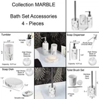Choose the piece you need or the full set MARBLE EFFECT DESIGN: Enjoy the unique combination of the shiny smooth surface and the printed marble design of this bathroom accessory set which brings a sophisticated and modern style to your bathroom. 4 PIECES MATCHING COLLECTION: Complete your bathroom countertops with those accessories featuring a tumbler, a soap dispenser, a toilet brush with holder and a soap dish cup HIGH-QUALITY: Enjoy the sturdy construction of this set of 4 pieces, this bathroom set is made of durable polyresin which is rust free, the bottom is textured to avoid any slippage from the counter top or from the floor. This lovely bathroom accessories set will last for years on any bath, kitchen counter top, vanity or bath floor VERSATILE: The perfect decoration accessories set for master, guest or kids bath. Add a nice touch to your counters, kitchen, laundry or vanity. Also suitable for commercial use PERFECT GIFT: For its stylish design and the convenience it brings, this bathroom accessory set is an ideal gift for ladies and girls for Christmas, New Year, Valentine's Day, Mother's Day, Birthday or Party. Grace your bathroom vanities with elegance and modern style using this Marble effect bath accessory Set 4-pieces . If your bathroom counters look a little cluttered, you may need to upgrade your space with these bathroom accessories. Stop throwing your bathroom essentials all over the counter and use one of these convenient sets instead. Actually Evideco's bath sets are designed to be enjoyed individually or as a whole. With offerings such as soap dispenser, tumbler, toothbrush holder, soap dish cup, vanity tray, waste basket or toilet brush holder. Indeed, adding style to your bathroom, kitchen, laundry or for your vanity décor is easier than ever. A collection of useful holders, trays and organizers makes getting through morning and evening routines joyful and easy. Moreover, our bathroom accessories sets offer style and décor, no matter what design you love. Plus, they're durable and made with easy-to-clean materials. We offer plastic, ceramic, bamboo, acacia and stainless steel materials that won't rust after use .In short, our bath accessory set will complete your new bathroom look in seconds. But also, it will allow you to neatly arrange your bath essentials with style. Enjoy this Marble bath accessory Set 4-pieces to freshen up your countertops and bring style to your home in seconds."