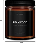 Teakwood Scented Candle - 7oz | 200g | 40 hour burn time | Natural cotton wick Candle for Men - Scented with premium fragrance oils that create wonderful aroma. Our candles offer optimal scent throw. Soy Wax - Our soy wax provides an optimal clean burn while minimizes tunneling. 100% Natural cotton wick is safe for the environment. Makes a Great Gift - Need the perfect candle gift? You found it. Top quality scented candles light up any room. All candles come in a premium gift box. 1OAK promise of satisfaction, buy with confidence. If there is any issue with the product or anything happens to your candle, we will work with you to fix the issue. Just contact 1OAK directly through Amazon. Product Description Where Minimalism Meets Affordability Brand Mission Statement: At 1OAK, we believe that luxury should be accessible to all. Our mission is to create beautifully crafted, minimalistic candles that elevate everyday moments while remaining affordable. We focus on quality materials and exquisite scents, providing a serene sensory experience that transforms any space into a sanctuary. Embracing simplicity and elegance, we aim to inspire a lifestyle of mindfulness and joy, one candle at a time. Sustainable sourcing: A vow to ethically sourcing materials, such as cotton wicks to protect the environment and soybeans grown sustainably. Natural Wax: Soy wax is natural and burns cleaner than industry prominent paraffin wax. Clean burn: Priority for clean-burning candles with minimal soot or residue, promoting a healthier environment. Minimalist design: Sleek, modern design, making 1OAK candles attractive as home décor items. Affordable luxury: Offering products that feel premium, but at a more affordable price point. Giftable box: All candles come ready with a stylish box ready to gift. Subscribe & Save: Subscriptions available for easier delivery. 1OAK Scented Candles for Men (Teakwood) Experience the soothing essence of teakwood candles, known for their ability to promote relaxation, lower stress levels, improve focus, and fill your environment with a touch of elegance. Masculine candles give a sense of depth and allure, providing a rich atmosphere. Signature Atmosphere Distinctive fragrance in your living space can serve as a personal hallmark. Rugged masculine scents cultivate a sense of identity and nostalgia. Mental Clarity and Focus A well-scented environment can elevate productivity and sharpen mental ability, making scented candles a great option for your workspace. Enhanced Ambiance Infusing a space with masculine candles transform a room to both elegant and soothing. Masculine aesthetics enhance the overall energy of the space. Improved Mood and Relaxation Improving mood and relaxation is essential for both mental and physical well-being. Whether you're dealing with stress, anxiety, or simply looking to unwind, scented candles can be a wonderful tool for improved mood and relaxation. Enhanced Ambience The soft glow of a candle adds a cozy, intimate atmosphere to any room. This can make spaces feel more inviting, perfect for unwinding after a long day. Use scented candles to create a relaxing and aromatic environment. Improved Air Quality Soy wax is a plant-based wax made from soybeans. This makes soy wax a natural alternative to paraffin wax. Soy wax burns cleaner, producing less soot than paraffin. This means fewer harmful particles are released into the air, improving the air quality in your room. Mindfulness and Meditation Soy scented candles are commonly used in meditation and mindfulness practices because they help clear the mind and enhance concentration. The act of lighting a candle before meditation can be a mindful ritual in itself. Candles also help signal a shift in focus from everyday stress to mindfulness. Candle Care and Best Practices: Candle Best Practices: Always burn candle within sight. Keep out of reach of children and pets. Never burn candle on or near anything that can catch fire. Keep away from drafty areas. Burning Instructions: Trim wick to 1/4 inch before lighting. Only burn the candle on a level surface. Keep wax pool free of debris. Do not burn the candle for more than 4 hours at a time.