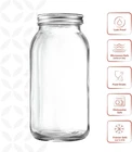Mason Jar 2 Quart Large For Preserving, & Meal Prep Glass Mason Jars W/ Lids- 1 set of 64 oz. ball canning jars and lids that are super for preserving and meal prep. These mason jars 64 oz are ideal for fruits, vegetables, pickles, sauces, treats, dry foods, beans etc. Wide Mouth- these are wide mouth mason jars, allowing for super easy pouring sauces, dressings; scooping- regular spoon gets to all corners sufficiently; and cleaning easily stick in that cloth and get cleaning. Leak Proof Lid- tightly sealable lid prevents messy spills and leaks, and seals in the freshness and delicious flavor. Just twist the cap of these ball jars and relax. Superior Quality Glass- its thick walls, smooth finish and gleaming glass beautifies your event and home, and allows you to see the inner contents. Safe, Safe, Safe, Safe- this mason jar is microwave safe (without the lid), freezer safe (when ⅔ full), food grade/safe and dishwasher safe, so you can easily store them, clean them and heat its contents.