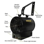 This 12,800 BTU Master Electric Fan Space Heater is turbo-charged for extraordinary heating power. The space heater has a built-in thermostat which makes for the ultimate temperature control. It delivers clean, quiet heat wherever you want it, because it doesn't require ventilation. Have a garage, workshop or warehouse space up to 388 square feet that needs a warm up? This reliable wall/ceiling heater is your solution-it's a simple and sturdy unit that's easy to install and easy to use. includes 1 year limited warranty. Great space heater for workshops, living spaces, garages, and barns Wall/ceiling heater heats up to 388 square feet Compact design so it fits almost anywhere Built-in thermostat for efficient heating Includes wall/ceiling mount for fast installation 1-year limited warranty