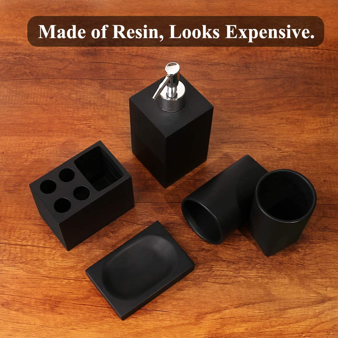 Complete Bathroom Accessories Set -- 5 pieces bathroom soap dispenser set includes a dispenser pump, a toothbrush holder, 2pcs tumbler, a dish. Perfect for storing your toiletries and keep your bathroom counter fully organized neatly. Classic Design -- Unique marble look design. Outfit your new bathroom or upgrade your current bathroom accessories set with its exquisite design, giving your bathroom a touch of elegant style. Premium Materials -- All pieces of bathroom sink set made of high-quality resin, perfect for daily uses, simply rinse and wipe with a soft cloth. Ideal for Gift -- This set is a wonderful housewarming present. Perfectly gift for your friend, family, business partner. The 5 piece kit is both useful and will beautify the home - the best choice! 100% CUSTOMER SERVICE-- We are committed to presenting the best quality materials and satisfaction services to our customers. If you have any issue with the contemporary bathroom accessories set, please contact us, we will be happy to help you Product Description Haturi Complete Bathroom Accessories Set Made with an easy-to-keep material and are perfect to daily use than plastic materials, stable using without going out of fashion. Premium Materials All pieces of bathroom sink set made of high-quality resin Learn More Others Add to Cart Add to Cart Add to Cart Add to Cart Add to Cart Add to Cart Add to Cart Customer Reviews 4.6 out of 5 stars 5,028 4.6 out of 5 stars 5,028 4.6 out of 5 stars 5,028 4.6 out of 5 stars 5,028 4.6 out of 5 stars 5,028 4.6 out of 5 stars 5,028 4.6 out of 5 stars 5,028 Price $25.99 $ 25 . 99 $23.99 $ 23 . 99 $24.99 $ 24 . 99 $25.99 $ 25 . 99 $23.99 $ 23 . 99 $27.99 $ 27 . 99 $19.99 $ 19 . 99 Storage Item Soap, toothbrush ,loption Soap, toothbrush ,loption Soap, toothbrush ,loption Soap, toothbrush ,loption Soap, toothbrush ,loption Soap, toothbrush ,loption Soap, toothbrush ,loption Quantity 5 Pack 4 Pack 4 Pack 4 Pack 4 Pack 4 Pack 4 Pack Material Resin Glass Glass Glass Glass Resin Glass Gift Choices ✔ ✔ ✔ ✔ ✔ ✔ ✔ Usage Scenarios Bathroom, Living Room,Bedroom Bathroom, Living Room,Bedroom Bathroom, Living Room,Bedroom Bathroom, Living Room,Bedroom Bathroom, Living Room,Bedroom Bathroom, Living Room,Bedroom Bathroom, Living Room,Bedroom