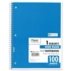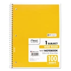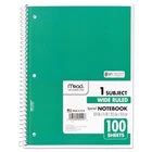 Mead Spiral Notebook,1-Subject,Wide Rule, 8 x 10-1/2, 100 Sheets (1 Pack) Spiral binding for smooth page turning. Double-sided, ruled paper. Durable, coated paper cover. 3-hole punched to store in your favorite binder. Great for color coding by subject. Notebook spiral binding will not snag and resists uncoiling to keep your notes together. One-Subject Format—Three-hole punched. Pocket-Sized Indicator: N; Book-Binding Type: Spiral Coil; Book-Binding Edge: Side; Cover Color: Randomly Assorted. About this item Perfect to use for 1 subject, this spiral notebook comes in handy for your favorite class or any project With 100 wide ruled, double-sided sheets, there’s plenty of notetaking space. Pages are perforated so they easily tear out with clean edges. Notebook is 3-hole punched for storage in your favorite binder. This allows you to keep all your work organized and in one place. Spiral binding will not snag and resists uncoiling to keep your notes together. Notebook covers are coated for durability. Sheets measure 10-1/2" x 7-1/2" when torn out. Overall size of 10-1/2" x 8". Available in assorted colors: Red, Blue, Green, Yellow, Purple, Black. Please note: color choice is not available for this item, color shipped to you is selected at random, and will vary.