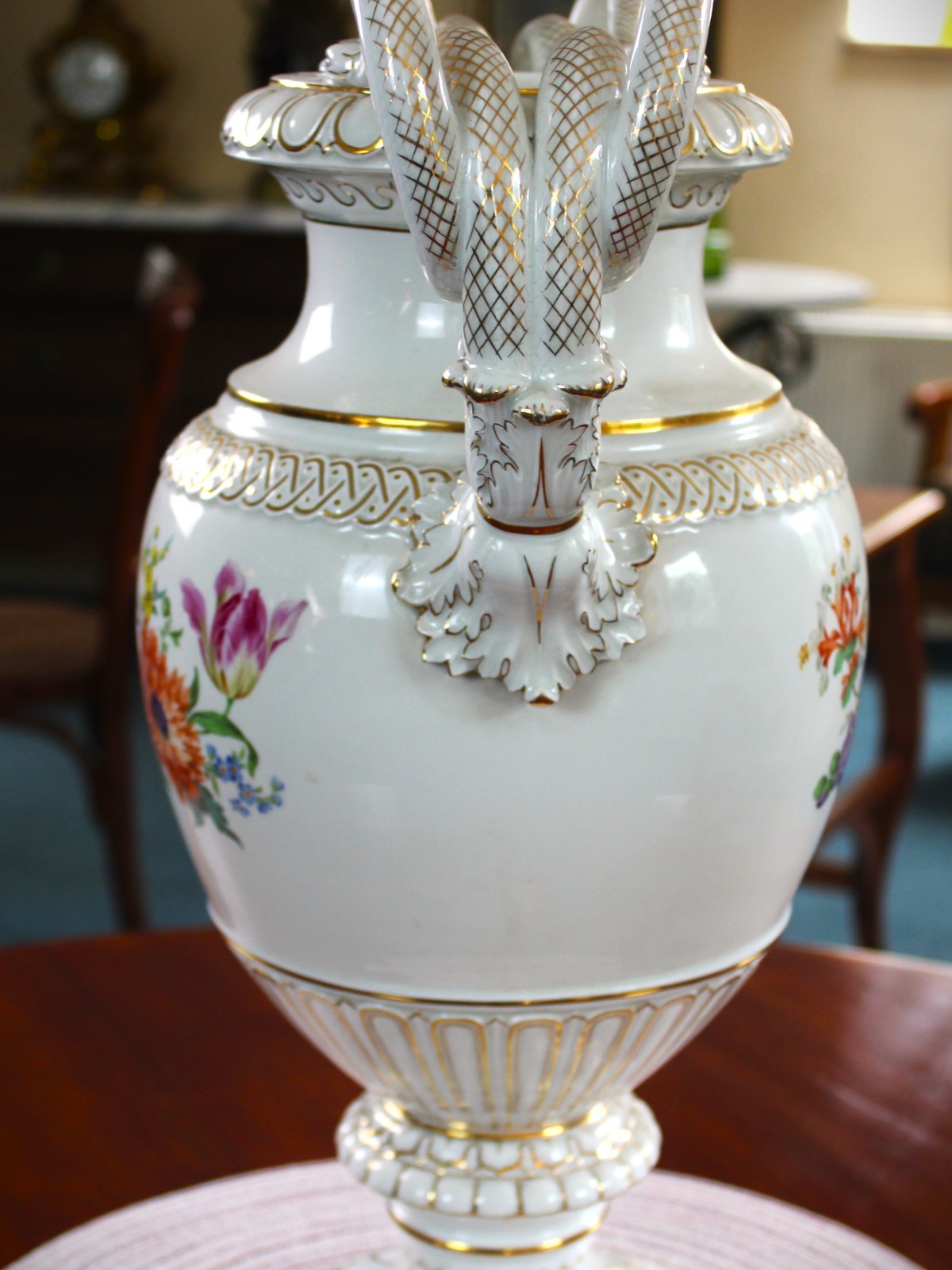 Sehr schöne, seltene Schlangenvase von Meissen in hervorragendem Zustand. Aus Erbschaft. Maße: 48 cm H 32,5 cm Umfang Privatverkauf. Daher lt. EU-Recht weder Umtausch noch Garantie oder Gewährleistung.