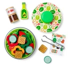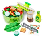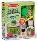 The Melissa & Doug Spin & Chop Salad Spinner is a pretend play food toy designed for children aged 3 and up. It is made of wood and plastic, featuring a kitchen appliance theme. This toy allows children to engage in imaginative play as they mimic real-life cooking activities like chopping and spinning salad.