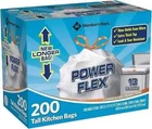 About this item: 200-count box of 13-gallon tall kitchen bags The patent-pending, double-thick top multiplies the strength of the top five inches of the bag providing an extra measure of security and preventing finger punctures during bag removal