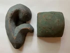 Mercer Moravian Pottery Architectural Decorations Pre-1930 period (Mercer Lifetime) These are not modern reproductions. They were produced during Henry Chapman Mercer's lifetime. Examples of these architectural design elements are seen throughout the interiors of the Mercer Museum and Fonthill (Mercer’s home) in Doylestown, PA. Not glazed. Square element: 2 ½” L x 2 ½” W x 1 ½” H. Plant element: 4 ¾” L x 3” W x 1” H. Condition: Very good. Chips on back of plant element. Includes bonus book: " The Bible in Tile" by Gerald W. Dieter and John S. Cummings, 1957. Record of the unique Mercer tile church chancel walls illustrating Bible stories, based on Moravian iron stove plate designs. Examples of architectural elements in tile See photos Henry Chapman Mercer (1856-1930) began producing decorative tiles Works in Doylestown, Bucks County, Pennsylvania in a style based on Moravian German settlers’ design motifs for their cast iron stove plates. Between 1911 and 1912 Mercer built the present Moravian Pottery and Tile Works (MPTW) to “master the potter’s art and establish pottery under personal control.” MPTW continued operation after Mercer's death in 1930 until sometime in the 1950s. Reproductions of Mercer's original designs were introduced by the Bucks County Department of Parks and Recreation in 1976 Mercer generally did not affix a potter's mark to tiles made while he directed the work. Following his death, there were several marks used to indicate that a tile had originated at MPTW. When the Bucks County Department of Parks and Recreation took over the MPTW as a working museum, all tiles made by the museum were impressed on the obverse with a stylized "MOR," and the year of manufacture.