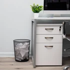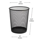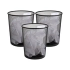 Recycle, Toss, and Stay Organized These metal mesh garbage cans are suitable for use in offices, bathrooms or kitchens since the mesh allows airflow and reduces build-up. The solid metal edge at the bottom of this set of waste bins collects small amounts of liquid, preventing spills. The steel mesh on the garbage cans is reinforced at the top and bottom, with a smooth rounded lip on the top. This value set of three provides a garbage can for the office, kitchen, and bathroom. The lightweight baskets are easily portable and can be moved from room to room to accommodate guests. Add a sleek, industrial, and modern style to your space with this set of three stainless steel mesh baskets. You can use this set of three waste baskets to separate metal and paper recycling from non-recyclable waste. The bins can easily fit in a cabinet or under a desk. You can use a small trash can liner with these bins, but the trash baskets are designed to work with or without liners. Keep a coordinated look in an office or study hall by using these bins under desks for waste paper. The bins can be hand washed with warm, soapy water. Stainless steel helps keep these garbage bins fresh. The mesh is transparent enough to see how much trash is in the bin while concealing unsightly garbage. Don't waste time checking empty opaque garbage cans. Switch to mesh! Three-can set: Create a coordinated look in your home and office with this set of three mesh garbage cans Ventilated mesh: Ventilated mesh allows air to circulate Stainless steel construction: Stainless steel is a lightweight, sturdy, premium material High capacity: These mesh garbage cans each fit 4.4 gallons (16.67 liters) of trash, for a total of 13.2 gallons (50 liters) of total trash capacity Dimensions: Each garbage opening is 11.5 and is 13.75 inches tall (29 x 29 x 34.9 centimeters)