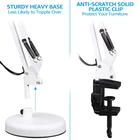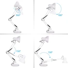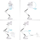 2 ways of placing Either stand on its own or clamp on a table, adjustable c-clamp for mounting onto any surface up to 2" wide whether it is vertical or horizontal, allows for versatile usage in office, bedroom, college, studio, etc. Easy to Use Lamp base and shade can be rotated almost to any angle, flexible spring-balanced adjusted arm extend up to 18" in height, thus provide a large lighting area in any position you need Superior Quality Solid metal and black finish for swing arm and lamp shade which is durable and exquisite, lamp stands firmly with weighted base, UL-listed power plug for safer operation User-friendly Slim shape takes up minimal space, a 51 long cable and easy on/off rocker switch facilitates your everyday use. Note: The product comes with base, clamp and power cable, but does not include light bulbs, please purchase extra if required. Specification: Wattage: 40W Base: E26/E27 Voltage: 120V Maximum opening of clamp: 2inch (50mm) Cable length: 51 inches Item weight: 2.9 pounds Color: White You may be able to find the relevant accessories you want here: LED Refrigerator Light Bulb A19 LED Light Bulbs A19 LED 9W Light Bulbs BR20 LED Bulb On Oct 27, 2024 at 20:16:50 PDT, seller added the following information: