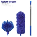 Microfiber Ceiling Fan Duster-Cobweb Cleaner Brush Kit Telescopic Extension Pole Description: Quickly & Easily Clean All of your Hard to Reach High Places such as Ceiling Fans, Vaulted & Cathedral Ceilings, Edges & Corners, Window Sills, and Cobwebs in the House or Garage using this Microfiber Ceiling Fan Duster & Cobweb Cleaning Brush Kit Telescopic Extension Pole by SUNRIX. This Kit Includes 1-Ceiling Fan Duster, 1-Cobweb Duster, and 1-Telescopic Extendable Pole, with a Maximum Reach of 107.9 Inches. Unlike other Poles that have Separate Poles that Screw together, Telescopic Poles are All in One, making Cleaning Faster, Easier, and Gives the Added Bonus of being able to be Stored in a Small & Compact Space when not in use. The Ceiling Fan Brushes are Made of High-Quality Microfiber which Easily Grabs Dust & Cobwebs, PP, and Upgraded Thicker Steel Telescopic Pole, Ensuring Durability and Effectiveness. The Cleaning Brushes are Designed with a Twist Removal Feature, Making it Quick & Easy to Remove Dust, & Store when Cleaning Debris from Hard to Reach Tight Spaces in the Home or Garage. The Telescopic Handle is Adjustable & Detachable for Easy Compact Storage. Easily Rinse with Water & Air Dry to Clean. Package Content: 1*telescopic rod 1*chenille duster head 1*fiber duster head