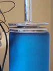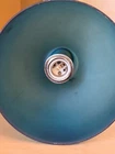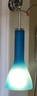 This is a gorgeous vintage light with nice chrome detailing. It wires directly into a ceiling box and has an articulated stem for tilted ceilings. It measures 26" high and is 8" at the bottom bell. There were some stains and metal scratches, but we mostly got them removed. The glass still has some residual marks but let's face it, the lamp has been around since about 1974 (my guess). I love it, and I'll bet you will too. The color alone is worth the price! The chrome is in very nice condition, needs a bit of polish perhaps, but no pitting or damage, and the glass is undamaged. We are pretty sure this is a European piece, probably Scandinavian. We do not accept returns or exchanges, but this is a keeper! long box, or you can pick up PA 19050