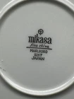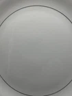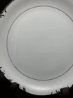 For sale pre-owned and vintage chop plate made by Mikasa in the 1970s in Japan. This bone china chop plate has a glossy white background featuring platinum trim and verge on the scalloped rim. This patter has been discontinued. Details: 12 inches diameter 1 1/8 inches high 2 pounds 5 ounces weight