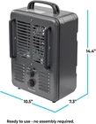 COST-EFFECTIVE HEATING: Cut down on your heating expenses with this efficient and reliable electric portable heater. With its compact design and powerful 1500 Watt performance, it delivers targeted heating specifically for enclosed garages. Not only does it provide effective warmth, but it also helps you save money by efficiently utilizing energy. Enjoy a cozy and cost-effective heating solution for your garage space. VERSATILE HEAT SETTINGS: Experience the flexibility of our utility heater with its three powerful settings. Select between low and high heat options to suit your preference and desired warmth level. Additionally, enjoy the convenience of a fan-only setting, eliminating the need for additional appliances to circulate air. With these options at your fingertips, you can create the ideal heating environment for any situation. PERSONALIZED COMFORT CONTROL: Take charge of your comfort zone effortlessly with the adjustable rotary thermostat featured in this compact utility heater. With its user-friendly design, you can easily find and set the perfect temperature to suit your preferences. Whether you prefer a cozy warmth or a slightly cooler atmosphere, this adjustable thermostat ensures that your comfort is in your hands. PRIORITIZING SAFETY: Safety is of utmost importance with this portable utility heater. It is equipped with power and caution indicator lights, which provide visual cues for easy monitoring of its operation. Additionally, it features a tip-over switch that automatically shuts off the heater if it accidentally falls or gets knocked over, preventing potential hazards. Furthermore, an overheat protection sensor is in place to safeguard against excessive heating, providing you with peace of mind while using this heater. ROBUST AND PORTABLE DESIGN: This portable heater is built to last, with its sturdy all-metal housing that remains cool to the touch even during operation. The oversized carry handle adds to its convenience, making it effortless to transport from one location to another. Whether you need to move it within a room or take it to a different area altogether, this heater ensures both durability and portability for your convenience and safety. Efficient Heating Solution Quickly and easily warm up your garage, workshop or other enclosed space with this powerful portable heater from Comfort Zone. The energy-efficient compact design can help save you money on your heating bills by providing targeted heating performance where you need it. Its durable all-metal construction and utilitarian grey coloring make this compact utility heater a functional and practical addition to any workspace. Stay Safe and Warm Safety is always an important consideration when selecting a space heater for your home or garage. Luckily, this Comfort Zone utility heater with thermostat is loaded with convenient features to ensure your comfort and safety. Power and caution indicator lights let you know when the heater is operating and when there is cause for concern. It also comes equipped with a safety overheat protection sensor that prevents the heater from getting too hot and a safety tip-over switch that will instantly cut power if it is accidentally knocked over. The stay-cool metal housing features an oversized carry handle for safe and comfortable transport as needed. Create Your Comfort Zone With two powerful heat settings and an easy-to-use adjustable thermostat, it’s easy to find your comfort zone with this portable heater. In addition to low and high heat settings, a fan-only setting gives you the option for cooling power as well. A smart choice for a busy garage, this multiple-purpose portable heater fan eliminates the need to purchase additional appliances that can quickly clutter up your workspace.
