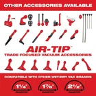 Milwaukee 0882-20 M18 18V Lithium-ion Cordless Compact Vacuum - Bare Tool New Product Details Color: Red Voltage: 18 v Power Method: Cordless Hose Length: 48 in Description The M18 Compact Vacuum provides users with the most powerful & adaptable handheld cleanup tool. A high performance motor creates best in class suction for cleanup of drywall dust, wood/metal shavings, and common jobsite debris. With a unique handheld design, the M18™ Compact Vacuum can be used in a wide variety of orientations and applications across the jobsite. For added versatility, the 0882-20 comes with (2) extension wands, 4’ flexible hose, crevice tool, floor tool, and removable HEPA filter. A clear view and easy to empty canister provides added convenience. As a part of the M18™ System of tools, it is powered by REDLITHIUM™ battery packs, which deliver up to 25 minutes of run time on a XC5.0 battery pack and 43 minutes of runtime on a HIGH DEMAND™ 9.0 Battery Pack. Includes: [1] M18 Compact Vacuum(0882-20) [1] 4' Hose [1] Crevice Tool [1] Extension [1] HEPA Filter [1] Floor Tool Features: High performance motor Adapts from handheld to stationary 40 CFM Removable HEPA filter Clear view and easy to empty canister Canister volume: 36 oz Inlet Diameter: 1-1/4" Battery System: M18 Compatible Batteries: All M18 REDLITHIUM Battery Packs Compatible Chargers: All M18 Chargers 5 Year Limited Warranty
