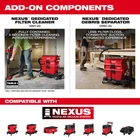 The Milwaukee M18 FUEL NEXUS Dual Battery Wet/Dry Vacuum Motor Head w/ PACKOUT Compatibility & VACLINK DELIVERS CORDED PERFORMANCE to clean up common debris when attached to a Milwaukee Wet/Dry Vacuum Tank. This Motor Head can clean up more jobsite debris than 4.25 Peak HP wet/dry vacuums without the corded headaches. On (2) M18 REDLITHIUM FORGE HD12.0 battery packs, it can clean up to 2,200 sqft. on a single charge or up to 49 minutes of continuous cleaning on max run-time mode. This cordless vacuum eliminates common corded hazards and the need to search for power on the job site. It is quieter than leading corded competitors and is ideal for use in any environment. This vacuum is part of the NEXUS Modular Vacuum System, allowing users to customize their cleanup experience with interchangeable motorheads for varying power, tanks for holding capacity, carts for mobility, and add-on components to enhance the cleanup experience. The top of the product is fully compatible with the Milwaukee PACKOUT Modular Storage System. This Motor Head can be paired with any Milwaukee NEXUS 6, 9, or 12 gallon Wet/Dry Vacuum Tank (0912, 0922, 0932). Also equipped with VACLINK Wireless Dust Control, compatible tools, and vacuums can connect, allowing users to activate their vacuum remotely. The included VACLINK Wireless Dust Control Remote provides on/off power control at the hose end, maximizing cleanup efficiency by eliminating wasted run-time. Features Corded performance equivalent NEXUS system: Customizable cleanup experience Runs on (2) M18 REDLITHIUM batteries DELIVERS CORDED PERFORMANCE Part of the NEXUS Modular Vacuum System: Customize your cleanup experience with interchangeable motor heads for varying power, tanks for holding capacity, carts for mobility, and add-on components to enhance the cleanup experience Requires (2) M18 REDLITHIUM batteries to operate POWERSTATE Brushless Motor and REDLINK PLUS Intelligence outperforms 4.25 peak HP with 115 CFM and 80 in of suction MAX RUN-TIME MODE delivers up to 49 minutes of continuous cleaning time and up to 2,200 sq-ft of debris cleanup per charge on (2) M18 REDLITHIUM FORGE HD12.0 Battery Packs MAX POWER MODE delivers up to 35 minutes of continuous cleaning time and up to 1,700 sq-ft of debris cleanup per charge on (2) M18 REDLITHIUM FORGE HD12.0 Battery Packs Attaches to Milwaukee NEXUS 6 Gal., 9 Gal., and 12 Gal. Wet/Dry Vacuum Tanks (0912, 0922, 0932) Compatible with Milwaukee PACKOUT Modular Storage System Includes VACLINK Wireless Dust Control Technology, allowing users to wirelessly activate the vacuum from the tool or remote Included Large High Efficiency Filter (49-90-1978) ensures optimal dust and microparticle collection Can be used with a Milwaukee Fleece Dust Bags for less debris build-up on the filter 1-7/8 in hose diameter Quickly swap or clean filters with the easy access quarter-turn design 3 Year Warranty Includes (1) M18 FUEL NEXUS Dual-Battery Wet/Dry Vacuum Motor Head, (1) VACLINK Remote, (1) Large Wet/Dry Vacuum High Efficiency Filter, (1) 1-7/8 in x 9 in Flexible Hose, and (1) Dust Extraction Hose Clip Adapter What's in The Box (1) M18 FUEL NEXUS Dual-Battery Wet/Dry Vacuum Motor Head (1) VACLINK Remote (1) Large Wet/Dry Vacuum High Efficiency Filter (1) 1-7/8 in x 9 in Flexible Hose (1) Dust Extraction Hose Clip Adapter Owner's Manual Warranty 3 Year Limited Factory Warranty 30 Day Satisfaction Guaranteed SKU 0926-20 Brand Milwaukee Length 22.3 in Height 12.2 in Width 14.5 in Weight 12 lbs why buy from us? secure & hassle-free shopping All items are covered by manufacturer warranty. fast shipping Most orders delivered in 1-3 business days. customer service Call us toll free: 1-800-629-3325 satisfaction guaranteed All our sales are backed by a 30-day satisfaction guarantee.
