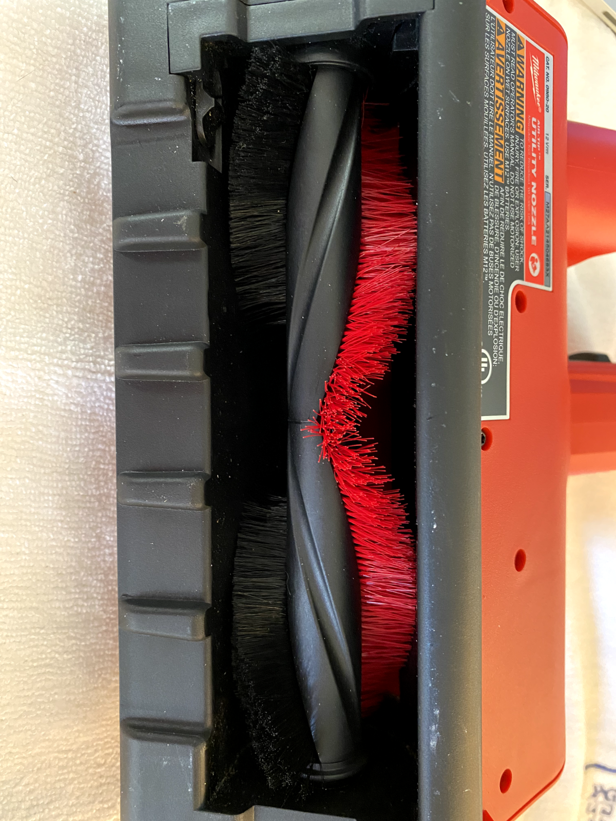 The MILWAUKEE M12 AIR-TIP Utility Nozzle makes jobsite cleanup easier with a powered brush roll that agitates debris for deep cleaning applications. The powered brush roll turns on at the push of a button, and is powered by an M12 REDLITHIUM Battery (not included). Paired with a vacuum that is turned on, the Utility Nozzle will be able to clean up more debris in one pass for increased productivity. A suction control valve allows for ease of use on a variety of carpets and substrates. The LED lights provides adequate visibility for cleaning in low-lit environments. The tool-free brush roll removal delivers easy maintenance when needed. The M12 AIR-TIP Utility Nozzle is compatible with other wet/dry vacuum brands that include 1-1/4", 1-7/8", 2-1/2" diameters, and is part of the AIR-TIP family of Trade Focused Vacuum Accessories. Optimized for handheld carpet cleaning needs Pair with a vacuum that is turned on LED lights for low lit environments Suction control valve for ease of use on carpets Tool-free brush removal Easy access on/off button 6 in. cleaning width 2.4 lbs. 1 hr. 15 min. runtime with M12 REDLITHIUM XC6.0 Battery Pack (battery not included) Includes (1) M12 AIR-TIP Utility Nozzle