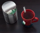 HIGH QUALYTY- The trash can is made of100% Brushed Steel, matte stainless steel which is fingerprint resistant and stain proof, super solid construction, smooth for easy clean. The trash bag is made of food grade plastic SWING AND REMOVABLE- Swing-top lid for easy use, the lid could be took off to place the trash bag PERFECTION COMBINATION- The trash can is perfect to contain little pieces of trash such as straw papers, tea bag, shell and other small trash, The disposable trash bag match the trash can well, keep the trash clean DIMENSSION- 4.7" in diameter and 6.5" in heights. Capacity: 1.5 L / 0.40 Gal. Size is right for small spaces, such as cabinets, tabletop and countertop