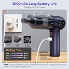 【15000PA Power Suction 】With a 120W powerful motor, our handheld vacuum cleaner provides 3 levels of suction power: Eco-11KPa, Medium 13KPa, and Max-15KPa, a variety of gears can easily solve the cleaning problems you are facing, fast heat dissipation function keeps the motor stable at a high speed of 108,000RPM, enhancing safety. 【Multi-Purpose Accessories】Our cordless vacuum cleaner comes with 7 multi-purpose accessories, The mini vacuum cleaner is equipped with four functions: suction, blowing, inflation, and vacuuming. The hair dryer nozzle that provides powerful airflow to quickly dry damp clothes or hair. Suction nozzles can suction and inflate organizers to make organizing easier. Pet care brush can suck away hair while brushing your pet. Inflatable nozzles can inflate balloons, swimming rings, and so on. 【Digital Display & Fast Charging】Our handheld car vacuum cleaner is equipped with a digital display that clearly shows the current number of gears used and the suction power level, which can help you better control the cleaning progress. built-in 4000mAh battery with a fast charging port. It takes only 2.5 hours to charge. It can be easily charged using a car charger, mobile power, laptop, or rechargeable battery. 【Portable & Lightweight Design】Our car vacuum portable cordless cleaner has a cordless design, so you don't have to worry about cords when cleaning. Made of lightweight material, only 0.66LB, It is comfortable to hold and saves space, making it easy to carry and store.designed with LED lights, so you can easily clean in dark places or at night. The user-friendly design brings great convenience to your cleaning work. 【 Effortless Maintenance 】With just one click dismantling, you can easily dump garbage and clean the vacuum cleaner. The washable HEPA-compatible filter ensures efficient dust absorption and can be easily emptied or replaced. Regular cleaning extends the vacuum's lifespan