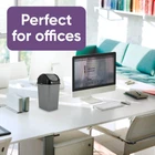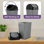 (PAY ATTENTION TO SIZE): There is no space too tight for this tiny miniature waste bin, measuring 8 x 7 x 5.5 inches. Capacity: 1.25 gallon, 5 Qt TOP QUALITY - This extra mini trash can is sturdily built with the highest quality plastic. Ideal for a heavily used tiny waste can or storage bin. EASY TO CLEAN: This mini waste can has no chance of rusting making it waterproof, hassle-free to maintain, and clean with water. VERSATILE BIN: Use this trashcan to dispose of peels, dirt, lint, papers, and tea bags, or to store small stuff such as crafts, tools, cleaning supplies, and more… LIGHTWEIGHT and COMPACT - This portable wastebasket is mini and very lightweight so it can easily be carried from your car to work and back home. Product Description Swing Top Lid you don't have to work hard and open the cover of your trash can just use this easy swing lid which is really practical and closes right away thus keeping all the trash out of sight. High Quality This high quality slim Waste Bin is especially designed to fit "narrow areas" and is a great space saver. It offers a easy to use swinging cover that opens smoothly from both sides, a classical design and shape . Zero Chance of Rust Unlike stainless steel trash cans, this durable and high-quality plastic garbage can, will never rust! Our swing lid garbage can will last you for years to come. Easy To Clean The trash can is made of durable plastic that is strong and easy to clean – simply wipe with a damp cloth when needed