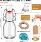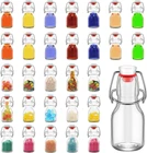 Mini Swing Top Glass Bottles, 2 oz Mini Storage Bottles with Personalized Label Tags and String for Crafts, Decoration, Wedding Party (30)