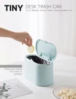 Product Description Mini Size The small shape moves freely. Liner Design Hide the garbage bag, Easy to replace. Pop-up design Simply tap the button to open or closed the lid. Wide Usage In The Dresser Table Store garbage after makeup. In The Kitchen Countertop Store kitchen waste. In The Office Desk Store desktop garbage, such as coffee capsules, waste paper, etc. In The Laundry Room Store lint (lint bin).