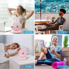 【USB Powered & Battery Powered Fan】This rechargeable fan can be powered by battery or USB. As a battery powered fan, you can handheld use it anywhere, anytime. As a USB fan, you can plug into all USB ports like laptops, power banks and other USB-enabled power supplies . Suitable for various places such as home, office, outdoor or other places. 【3 Speed Level Adjustable】: This small desk fan provides you low/medium/high 3 speed levels to choose. Select the appropriate fan speed by pressing the power button repeatedly. The maximum speed of mini desk fan is up to 3200 rpm to transfer you instant cool feeling. 【Flashlight & Blue Atmosphere Light】: This personal fan is equipped with side flashlight and blue atmosphere light fuction. Pressing the power botton 4 times will turn on the side flashlight. It can be used in the dark when you are outdoors or camping. A long press the power botton you will turn on the blue LED, brings you a beautiful atmosphere. We believe this desktop fan would also be a great gift choice. 【Portable Size & Exquisite Design】: This rechargeable fan enalbed with mini size: 4.9 x 5.6 x 1.4 inches. It's easy to put into a bag and is perfect for travel or camping. Also an handheld fan for , women and men outdoor use in hot summer. 【Long Endurance & Fast Charge】 Full charge takes only 2.5-3 hours and offers you up to 9 hours of continuous working time on low speed setting.