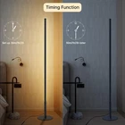 Modern LED Corner Floor Lamp, Dimmable 2700K-6500K Sleek Light 57.8" Height Metal Standing Lamp,Minimalist Design with Remote Control for Living Room,Bedroom(Metal,Black) Upgraded Light Strip & Materials: Upgraded COB light strip is brighter and more uniform in light effect, which can be used as a corner light as well as indoor lighting. High quality aluminum alloy and silicone light strip make it more durable, and the weighted base ensures its stability. The black lamp body adds a sleek and modern touch to the design Modern Style & Space Saving: Using a slim, straight black metal pole, the lamp takes up little space while displaying modern aesthetics, perfect for placing in a corner or next to a sofa to enhance the atmosphere of your home with a minimalist, stylish effect Brightness & Color Temperatures: The color temperature ranges from cool white to warm white, you can steplessly adjust the color temperature from 2700K to 6500K, customize the brightness from 10-100% according to different needs Light Memory & Timer Function: Easily adjust the color temperature and brightness using the remote control, and also set the light memory and timer off effect. It can be timed to turn off the light after 30 minutes/1 hour/3 hours and memorize the light effect before turning off the light Easy Installation & Variety of Scenes: The floor lamp can be installed smoothly with the supporting tools and instructions. It can be used as a functional lighting as well as enhance the decorative effect of your bedroom, living room and office. The black lamp body seamlessly blends with various interior styles, adding a luxurious touch to any space