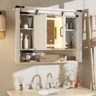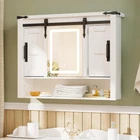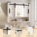 【3 Light Switches】: Medicine cabinet with lights, you can switch between 3 modes of light by simply touching the surface of the bathroom mirror. Different lights can bring out the most beautiful you whether it is day or night. Let you experience different styles in the bathroom. 【Retro Farmhouse Design】: Our farmhouse wall cabinet uses white wood and is matched with a black iron frame, exuding a rustic charm. It is equipped with a sliding barn door. It not only provides storage space, but also has decorative charm, making your bathroom more unique. 【Adjustable Partitions】 Want to store large items in the medicine cabinet? The removable shelves of our bathroom cabinet can adapt to items of all heights and easily eliminate clutter. Thanks to our spacious storage space, you can enjoy a tidy bathroom. 【Oversized Mirror】Bathroom medicine cabinet with mirror and lights, mirror size: 13.2 inches * 14.3 inches. Pulling open the mirror contains hidden space, and 1 layer of adjustable shelves is convenient for storing your private items. The extra-long storage table under the mirror is suitable for placing aromatherapy, etc. 【Excellent After-Sales Service】Our bathroom mirror size: 31.5 inches long * 24.4 inches wide * 7.9 inches high (please measure carefully before purchase). Comes with detailed installation instructions and hardware tools, each piece is labeled, please follow the steps in the included instructions. Please contact us for any after-sales issues. Product Description Are you also looking for a unique Bathroom Medicine Cabinet? Our mirror bathroom cabinet is equipped with sliding mirror doors and open shelves. This wall-mounted Bathroom Vanity Cabinet will add a stylish touch to your home. The combination of exquisite style and white, matching your bathroom, can bring a new color to your life. Black Metal Handle and Open Storage Space When you use a sliding door, it will cause fingerprints on the glass.Metal handles can prevent it.The additional open storage space can be placed for aromatherapy, towels, makeup, so that you can take them directly. Adjustable Waterproof Shelf You could place items of different heights according to your needs with our six-position adjustable shelf.Convenient to place your items of different sizes.Bathroom wall cabinet adopt waterproof panels.Even in a humid environment, the panel will not be damaged. Silky Smooth Farmhouse Barn Slide Unlike traditional doors, sliding doors give people a stylish feeling. The open space meets various storage needs. It can give your bathroom a brand new feel. Our bathroom mirror cabinet can give you a brand new look and make you feel relaxed and happy when you are in the bathroom. What is included? 1×Mirror Cabinet 1×Instruction 1 x Assemble Instruction 1 x Assembly Tools Bathroom Medicine Cabinets with Mirror Doors and LED Light A modern style wall-mounted mirror cabinet that perfectly meets your various needs. Containing a spacious mirror, hidden space behind the mirror, 2 storage cabinets and 1 storage table, it can accommodate all your cosmetics and other beauty essentials, making everything look organized, and provides adjustable lighting brightness to create a diverse experience for you. Color: White Main material: MDF Style of Door: Barn Door Product Dimensions: 5.7"D x 28.4"W x 31.5"H Scenario Usage: Bathroom/Foyer/Living Room Special Feature: Illuminated,Mirror